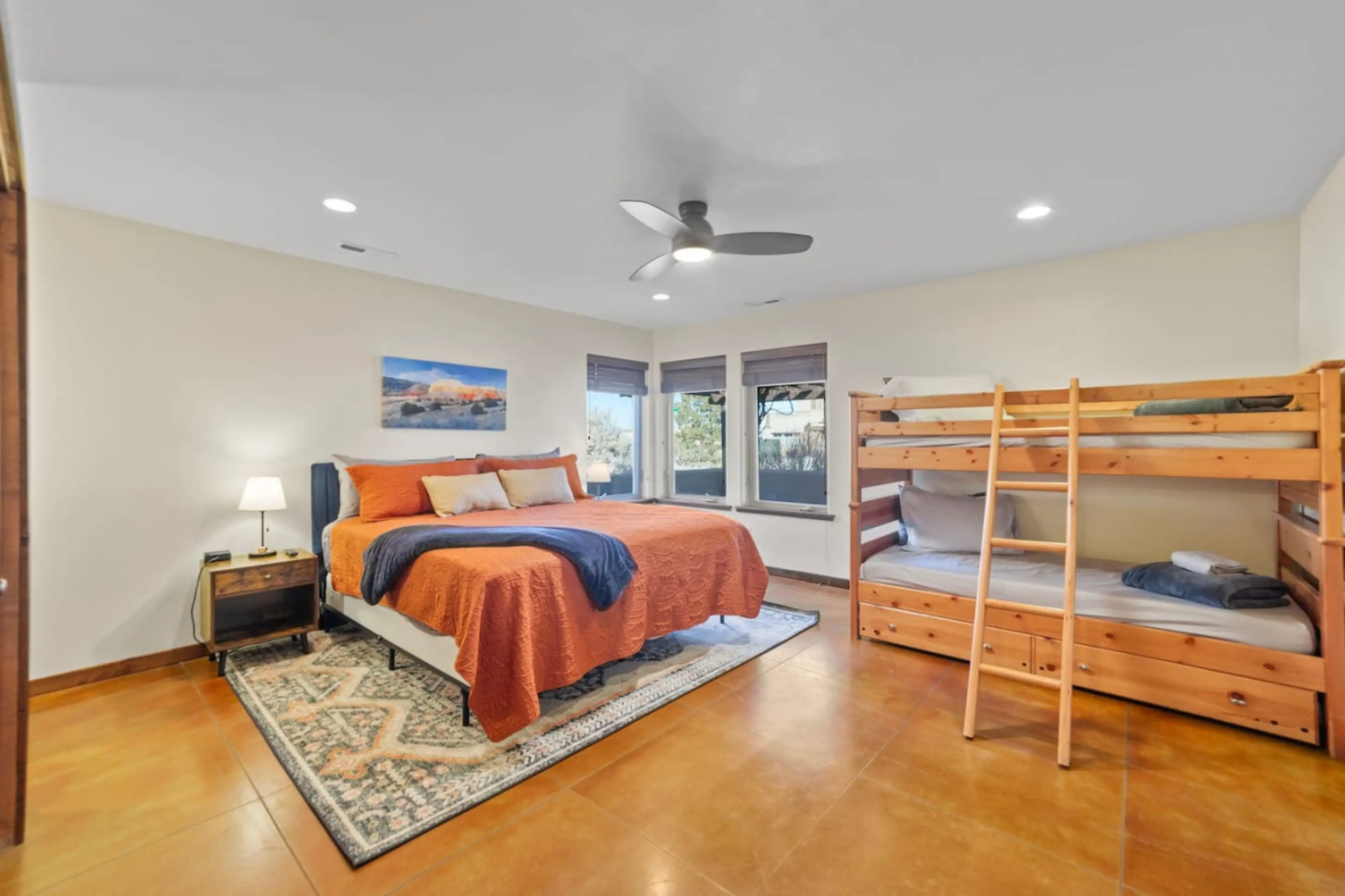 Newly remodeled single story town home with 360 degree views of the red rock cliffs. Perfect for two couples or extended family. Features a Master suite with ensuite bathroom and walk out patio. An additional king bedroom with twin bunk bed and a full hall bathroom. Walk around shaded porch for out...